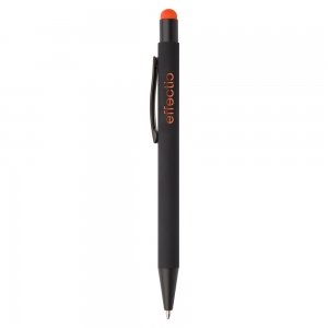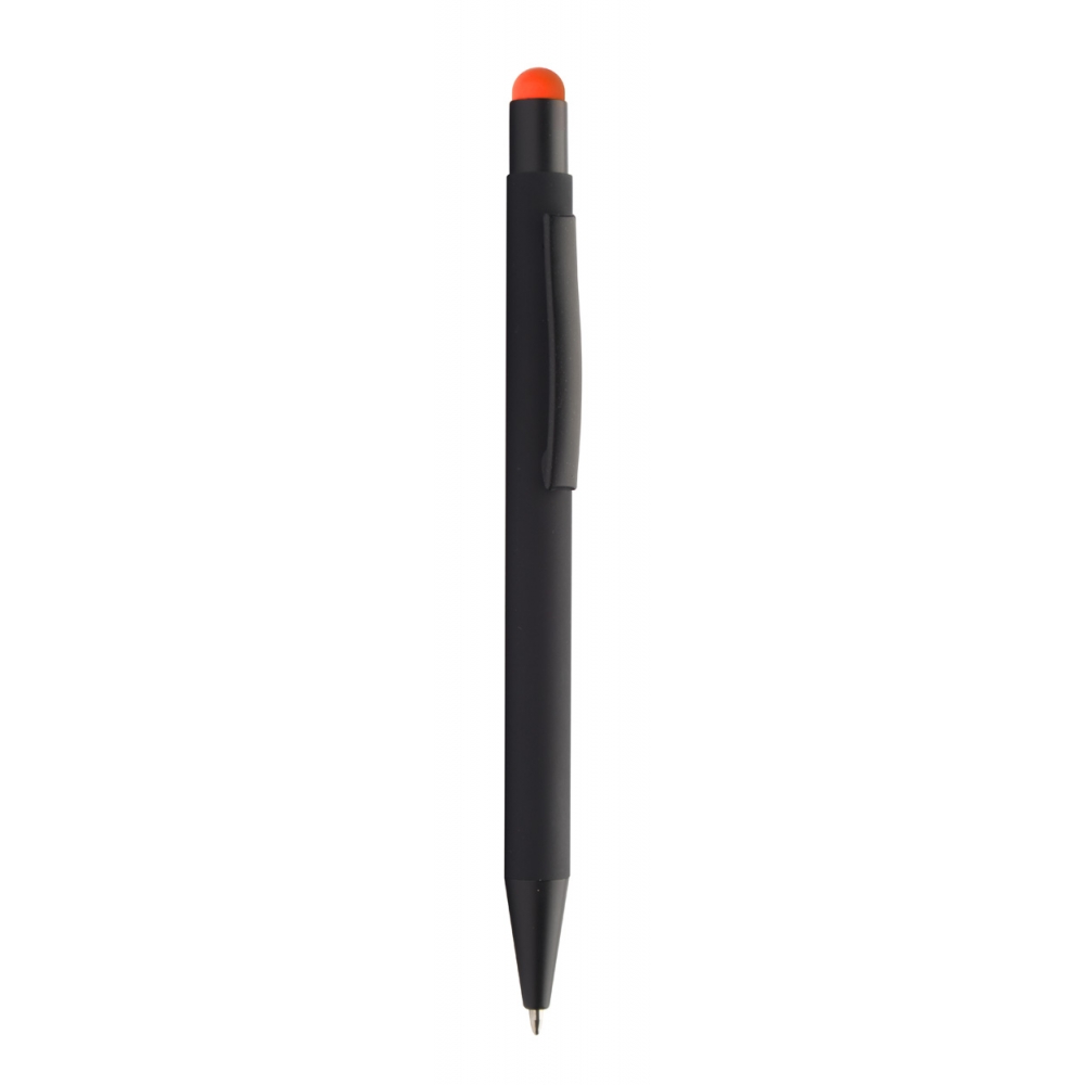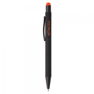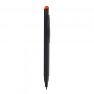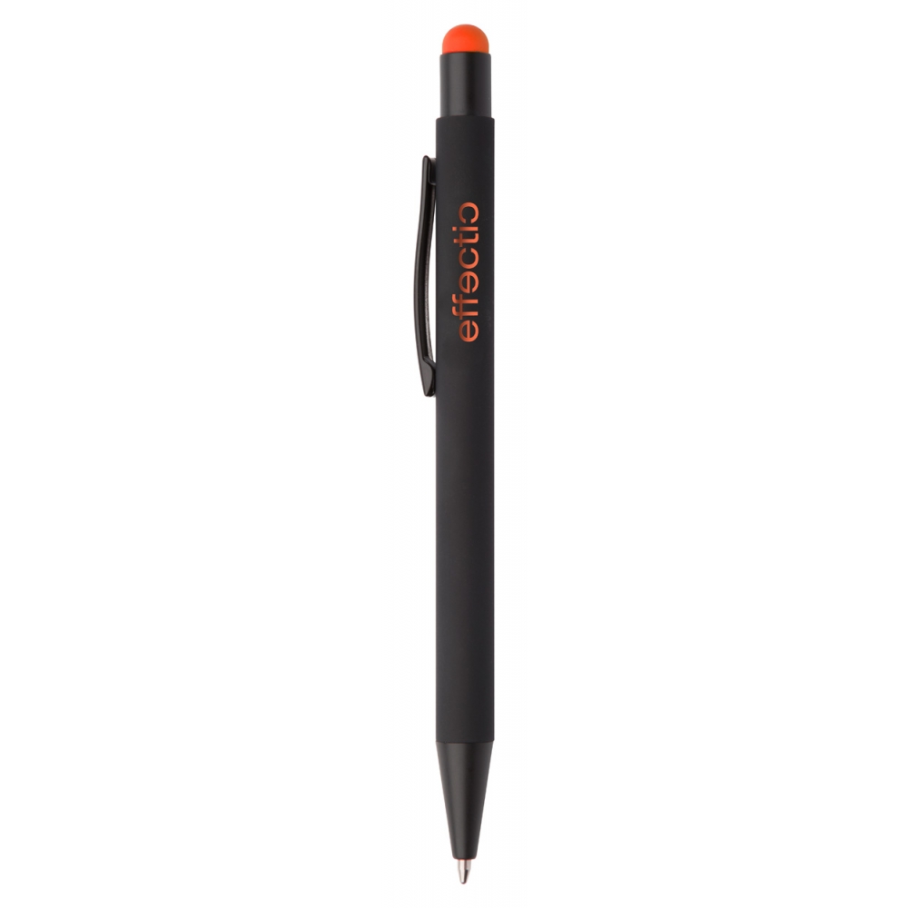 Artikel-Nr: AND845170-03Aluminium-Kugelschreiber mit Touchpen und gummierter Oberfläche und Spezialbeschichtung für eine Farbgravur (Gravurfarbe abgestimmt mit Stylus), blauschreibend.