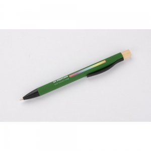 Artikel-Nr: ARD19719-05Der Kugelschreiber PIK ist ein elegantes und funktionelles Schreibgerät. Er ist aus Metall gefertigt und bietet Robustheit und Langlebigkeit, während die gummierte "Soft-Touch"-Oberfläche für Komfort und Freude beim Schreiben sorgt. Ausgestattet mit einem Clip, um den Stift an einer Tasche oder einem Notizbuch zu befestigen. Die Oberseite des Kugelschreibers ist mit einem Bambusknopf versehen, der für einen natürlichen und stilvollen Touch sorgt. Der PIK-Stift ist die perfekte Kombination aus modernem Design und umweltfreundlichem Element und damit eine ausgezeichnete Wahl für den täglichen Gebrauch und als Geschenk.
