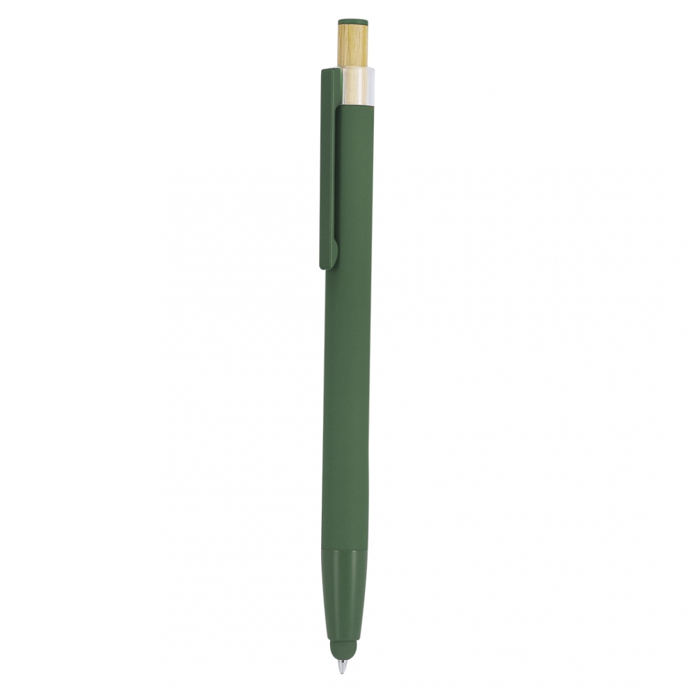 Artikel-Nr: KTO21988004000Pointer-Kugelschreiber aus recyceltem Aluminium. Mit gummierter Oberfläche. Mit Bambus-Druckknopf und passendem Detail an der Oberseite, abgestimmt auf die Gehäusefarbe und Metallclip. Druckmechanismus. Mit Emblem aus recyceltem Aluminium. Recyceltes Aluminium ist ein Material mit nahezu unendlichen Recyclingmöglichkeiten, ohne seine ursprünglichen Eigenschaften zu verlieren und mit geringerem Energieverbrauch im Prozess. Die GRS-Zertifizierung (Global Recycled Standard) garantiert den recycelten Ursprung des für die Herstellung des Produkts verwendeten Materials. Materialien wie Bambus fördern die Verwendung natürlicher Rohstoffe und reduzieren gleichzeitig Schadstoffemissionen. Darüber hinaus stammt Bambus von einer sehr widerstandsfähigen und vielseitigen Pflanze mit schnellem Wachstum und Regeneration und ist damit eine ausgezeichnete Alternative zur Verwendung von herkömmlichem Holz.