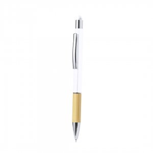 Artikel-Nr: KTO20656001000Stilvoller Kugelschreiber aus Bambus und Aluminium mit Drehmechanismus. Robuster Aluminiumschaft mit glänzender Oberfläche und Bambusgriff, mit Schaft in verschiedenen markanten Farben und passendem Stift auf der Oberseite. Metallclip und blaue Tinte. Präsentiert in einem einzelnen recycelten Beutel. Materialien wie Bambus fördern die Nutzung natürlicher Rohstoffe und reduzieren so den Schadstoffausstoß. Es stammt von einer äußerst widerstandsfähigen und vielseitigen Pflanze mit schnellem Wachstum und Regeneration, was es zu einer hervorragenden Alternative zur Verwendung von herkömmlichem Holz macht.