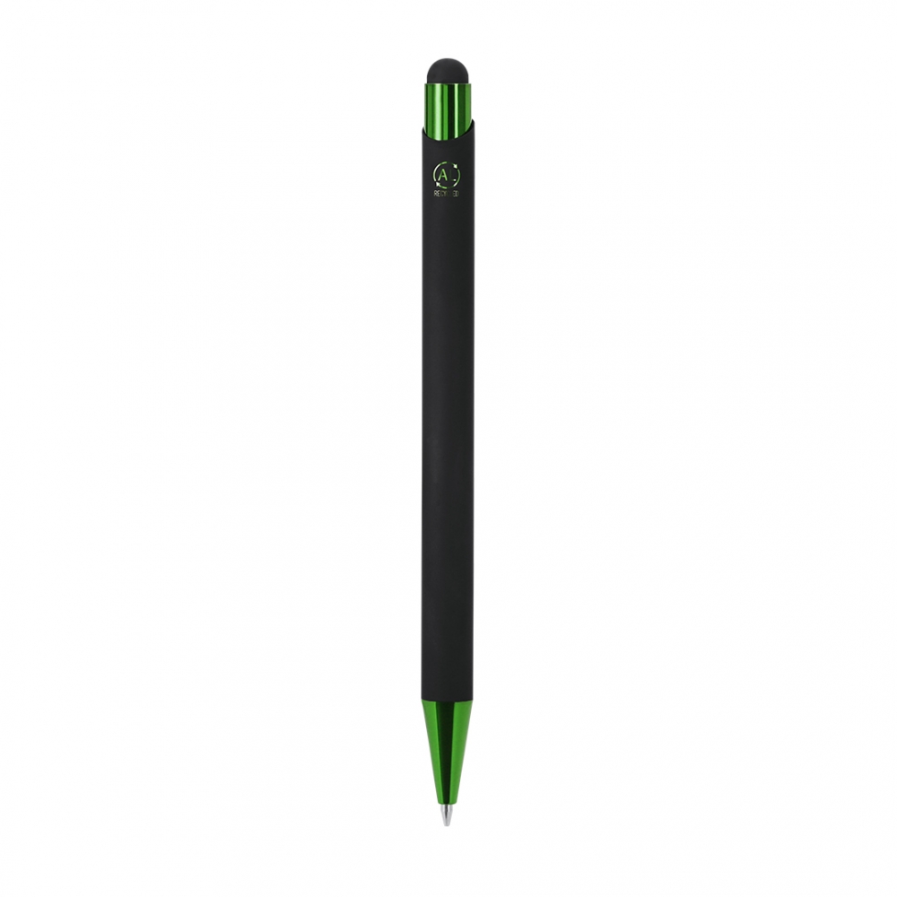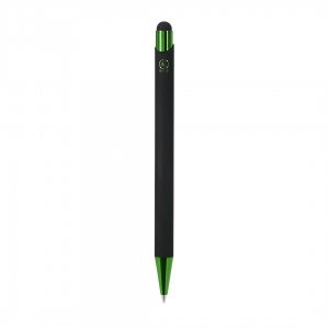 Artikel-Nr: KTO22407004000Druckknopfmechanismus, Zeigestift aus recyceltem Aluminium. Druckknopf, Metallclip und Spitze in glänzendem Finish. Korpus aus Gummi verarbeitet, speziell für Lasermarkierung mit Spiegeleffekt konstruiert. Charakteristisches recyceltes Aluminium auf der Oberseite des Stifts. Jumbo lädt auf und in blauer Tinte.