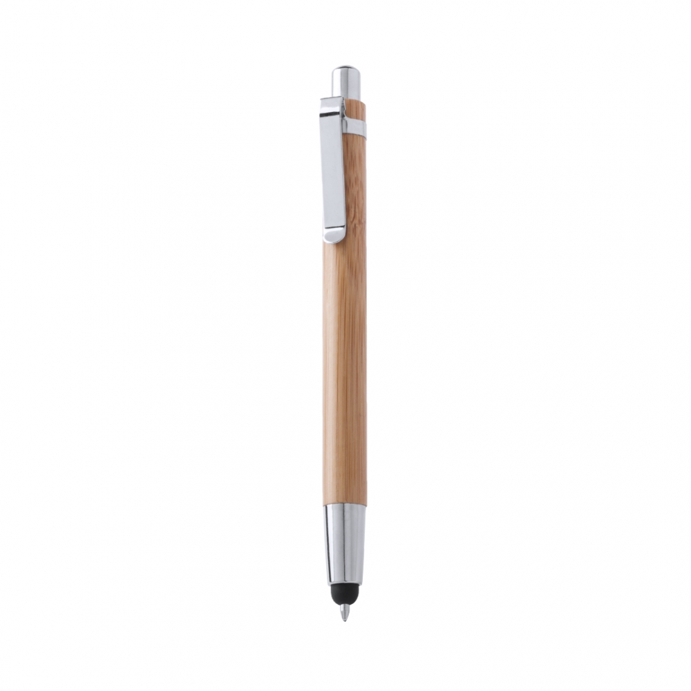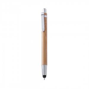 Artikel-Nr: KTO15261000000Eleganter Druck-Kugelschreiber mit Stylus und Schaft aus natürlichem Bambusholz mit Kontrastdetails in glänzendem Silber-Metallic. Jumbo-Patrone mit blauer Tinte.