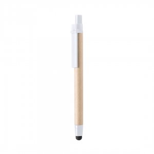 Artikel-Nr: KTO14903001000Druck-Kugelschreiber mit origineller Kombination - Schaft aus Recyclingkarton in Naturfarbe und Kontrastdetails in lebendigen Farben. Mit schwarzem Stylus und blauer Tinte.