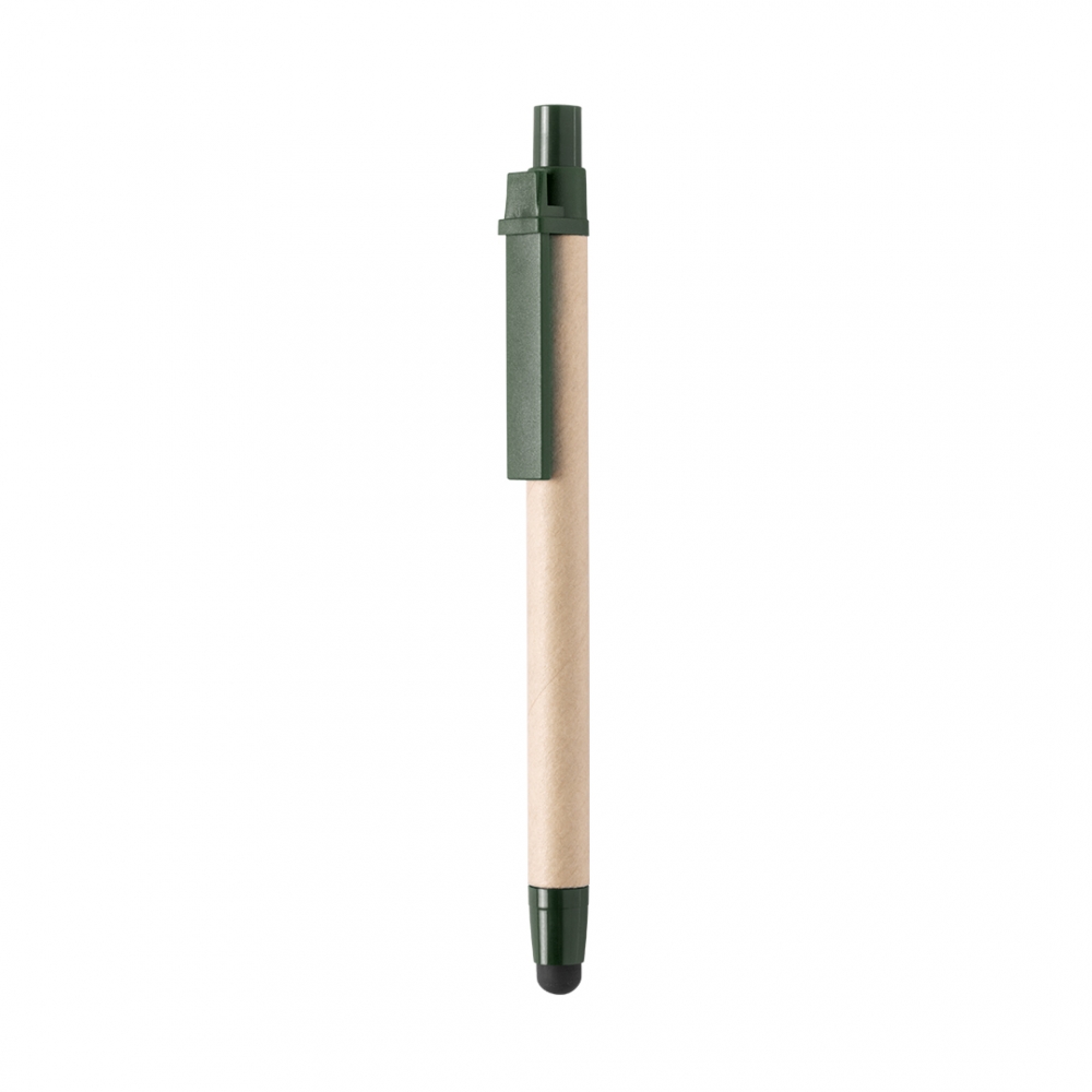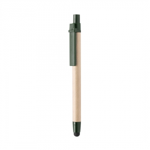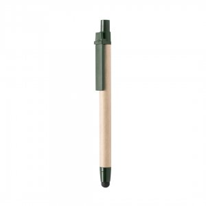 Artikel-Nr: KTO14903004000Druck-Kugelschreiber mit origineller Kombination - Schaft aus Recyclingkarton in Naturfarbe und Kontrastdetails in lebendigen Farben. Mit schwarzem Stylus und blauer Tinte.