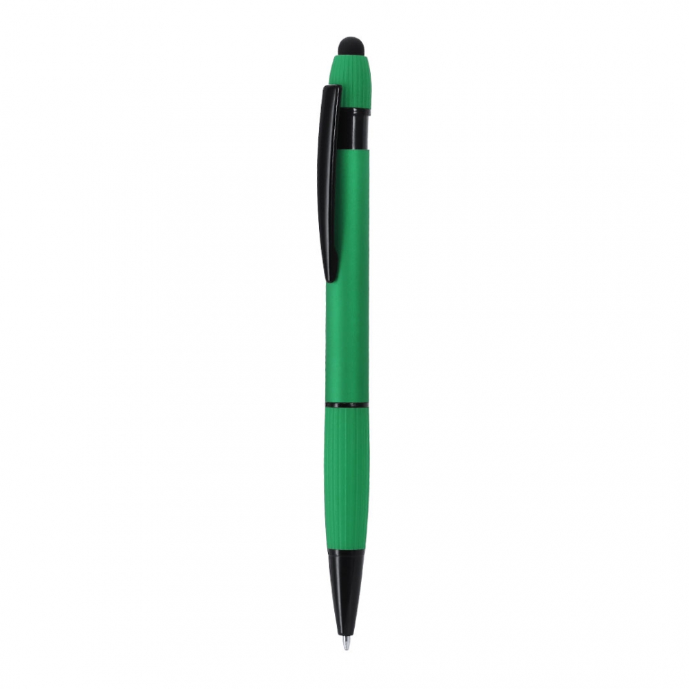 Artikel-Nr: KTO22432004000Zeigestift mit Korpus aus recyceltem Aluminium. Gummiartiger Griff. Oben befindet sich ein schwarzer Zeiger. Metallclip und Zubehör in Schwarz. In blauer Tinte. Charakteristisches recyceltes Aluminium auf der Oberseite des Stifts.