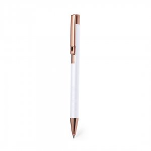 Artikel-Nr: KTO20659001000Hervorragender Kugelschreiber aus Aluminium mit Druckknopfmechanismus. Robuster, mattierter Aluminiumschaft mit dekorativen Elementen in eleganter Kupferoptik, mit Schaft in einer großen Auswahl an markanten Farben. Metallclip, blaue Tinte und Großraummine. Präsentiert in einer einzelnen recycelten Tasche.