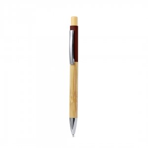 Artikel-Nr: KTO20648003000Stilvoller Kugelschreiber aus Bambus. Widerstandsfähiger Aluminiumschaft mit gummierter Oberfläche und Bambusgriff, in einer großen Auswahl an markanten Farben. Metallclip mit Druckknopfmechanismus und blauer Tinte. Präsentiert in einer einzelnen recycelten Tasche.