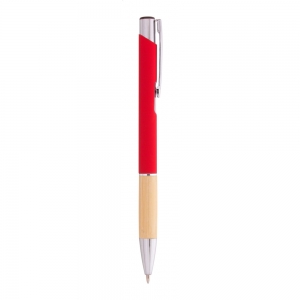 Artikel-Nr: AND800505-05Aluminium-Kugelschreiber mit Bambus-Griffzone, gummierter Oberfläche und spezieller Beschichtung für eine Spiegelgravur, blauschreibend.