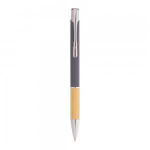 Artikel-Nr: AND800505-77Aluminium-Kugelschreiber mit Bambus-Griffzone, gummierter Oberfläche und spezieller Beschichtung für eine Spiegelgravur, blauschreibend.