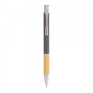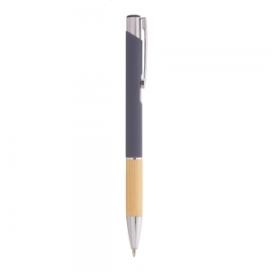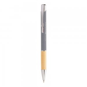 Artikel-Nr: AND800505-77Aluminium-Kugelschreiber mit Bambus-Griffzone, gummierter Oberfläche und spezieller Beschichtung für eine Spiegelgravur, blauschreibend.