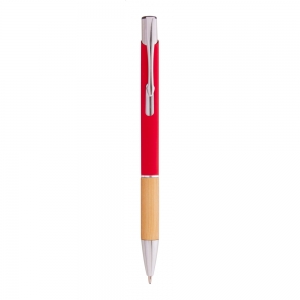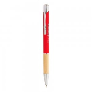 Artikel-Nr: AND800505-05Aluminium-Kugelschreiber mit Bambus-Griffzone, gummierter Oberfläche und spezieller Beschichtung für eine Spiegelgravur, blauschreibend.