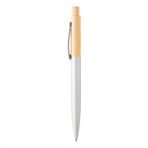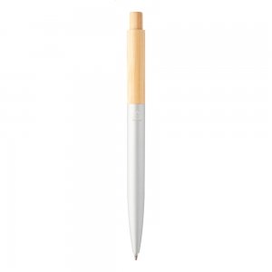 Artikel-Nr: AND809621-21Kugelschreiber aus Bamgus und recyceltem Aluminium mit gummierter Oberfläche und Gunmetal-Clip. Blauschreibend.