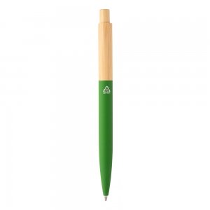 Artikel-Nr: AND809621-07Kugelschreiber aus Bamgus und recyceltem Aluminium mit gummierter Oberfläche und Gunmetal-Clip. Blauschreibend.