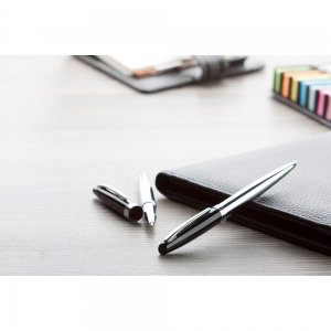 Artikel-Nr: AND852011Metall-Schreibset, bestehend aus Kugelschreiber und Rollerball mit verchromtem Schaft und schwarz lackierten Kappe, blauschreibend. Einzeln in Geschenkbox.
