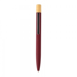 Artikel-Nr: AND808192-08Drehkugelschreiber aus recyceltem Aluminium mit Gunmetall-Oberfläche und Bambus Drücker, blauschreibend. Einzeln in Kraftpapierbox.