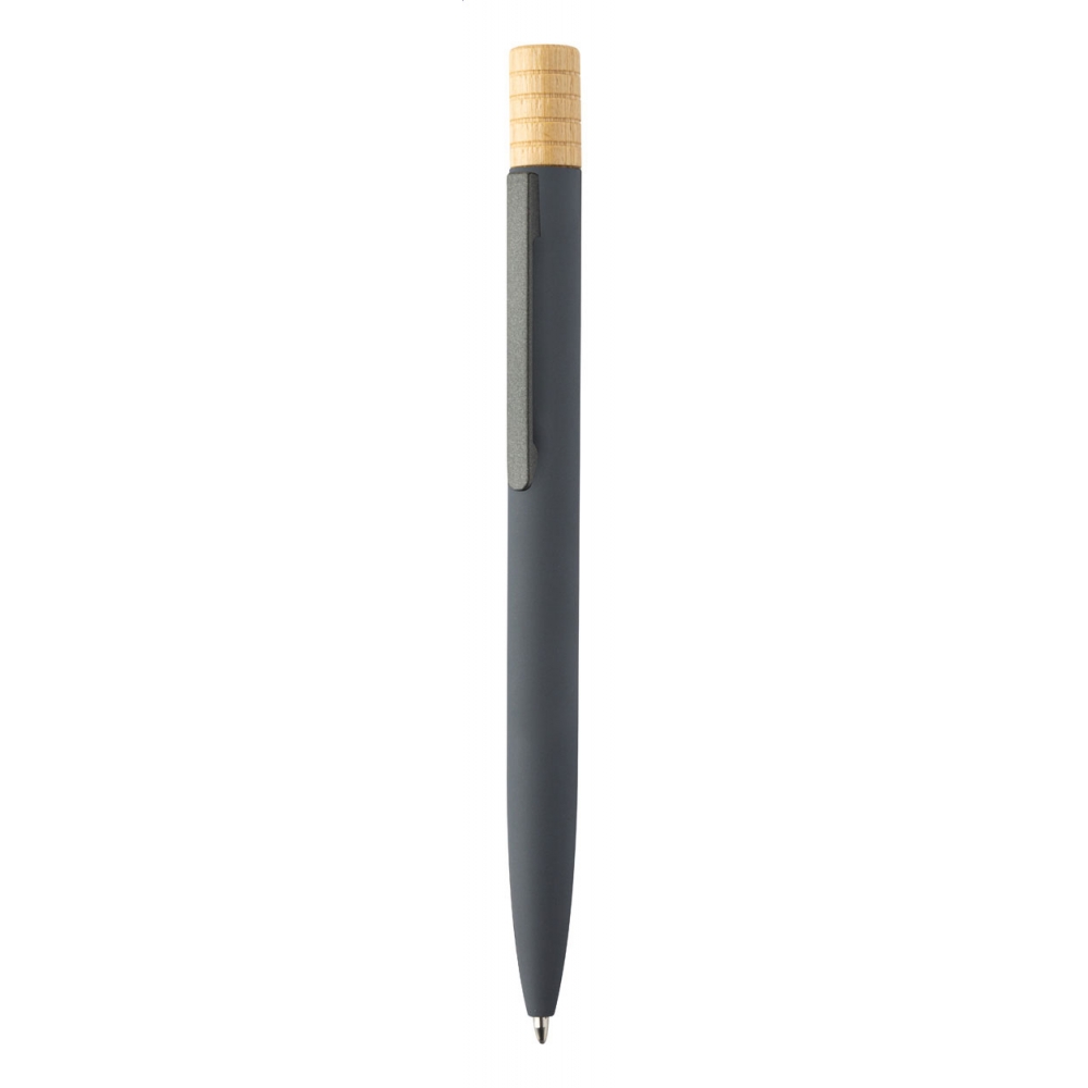Artikel-Nr: AND808192-81Drehkugelschreiber aus recyceltem Aluminium mit Gunmetall-Oberfläche und Bambus Drücker, blauschreibend. Einzeln in Kraftpapierbox.