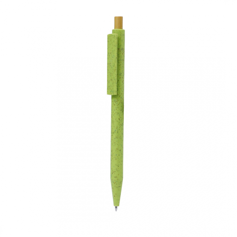 Artikel-Nr: KTO21786004000Kugelschreiber aus Weizenfaser. Mit passendem Körper und Clip, Druckmechanismus aus Bambus und blauer Tinte. Mit markantem Logo auf dem Stift. Die Weizenfaser fördert die Nutzung natürlicher Rohstoffe und reduziert so die Schadstoffemissionen.