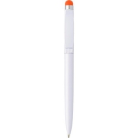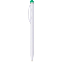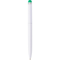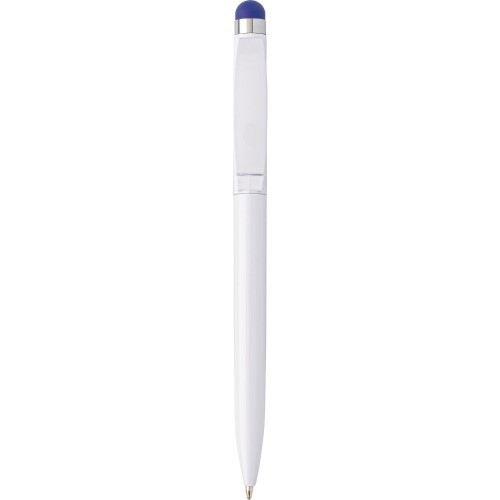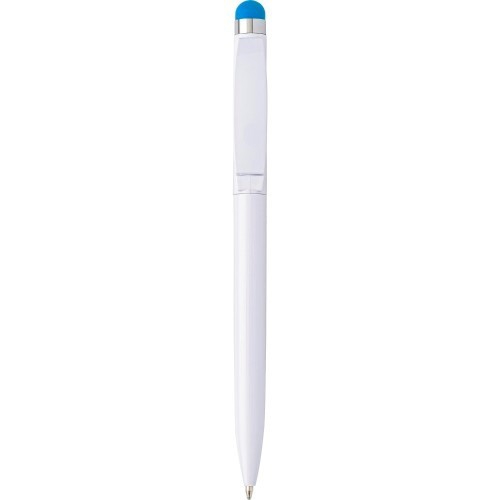 Weißer Kugelschreiber mit Drehfunktion, Touchscreen Stift, bunte Gummiekappe