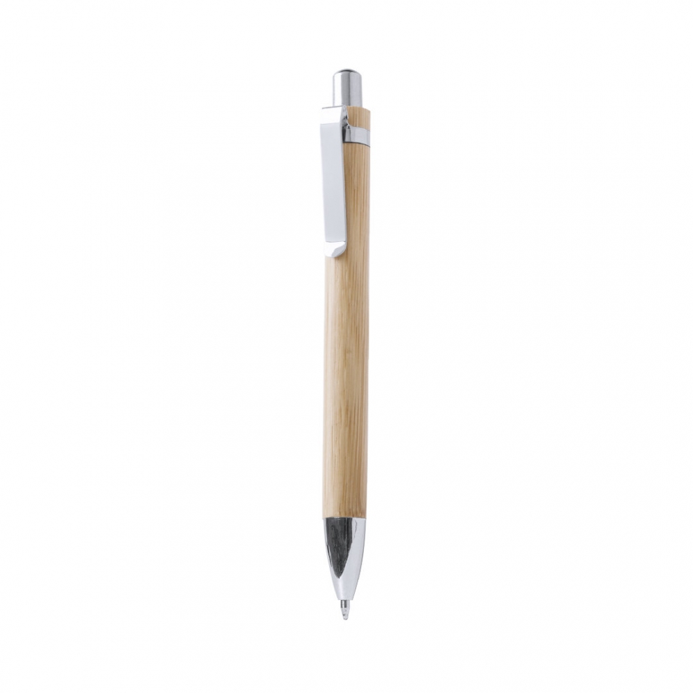 Artikel-Nr: KTO15260000000Eleganter Druck-Kugelschreiber mit Schaft aus natürlichem Bambusholz und Kontrastdetails mit Metallic-Finish in glänzendem Silber. Jumbo-Patrone mit blauer Tinte.