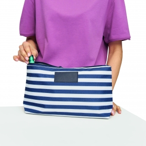 Artikel-Nr: INP56-0810530Kulturbeutel STRIPY: Hauptfach mit Reißverschluss, innen ein kleines Reißverschlussfach, Kosmetiktasche außen im maritimen Streifen-Look und mit Kunstleder-Applikation auf der Front für eine Werbeanbringung – ideal für Kosmetik und Pflegeartikel