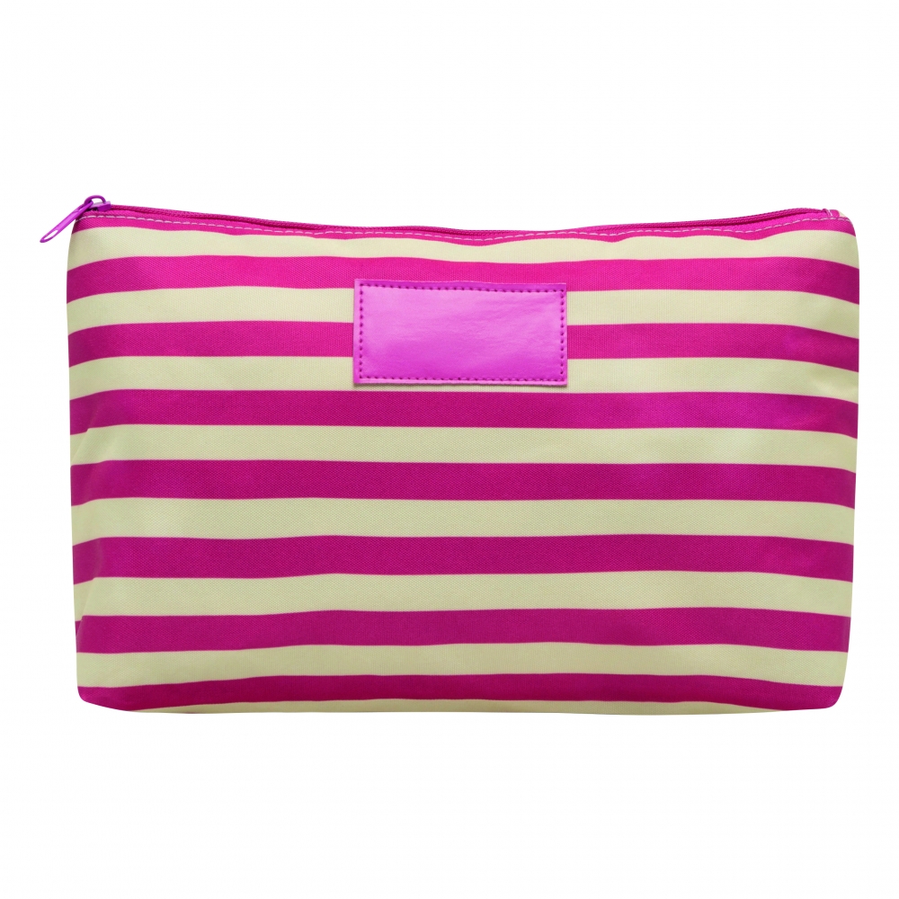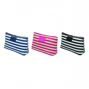 Artikel-Nr: INP56-0810531Kulturbeutel STRIPY: Hauptfach mit Reißverschluss, innen ein kleines Reißverschlussfach, Kosmetiktasche außen im maritimen Streifen-Look und mit Kunstleder-Applikation auf der Front für eine Werbeanbringung – ideal für Kosmetik und Pflegeartikel