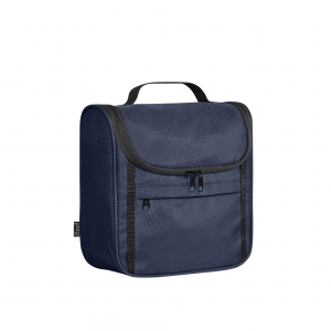 Artikel-Nr: HLF1818051-198Attraktiver Kulturtasche zum Hängen oder Stellen; recycelter Oberstoff; Reißverschlussvortasche; Schlaufenband auf der Front; dreiseitig umlaufender 2-Wege-Reißverschluss; Reißverschluss-Fach im Deckel; vier Netz-Einsteckfächer innen; Handgriff
