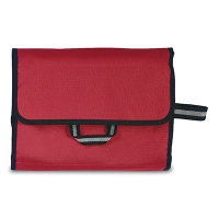 Kulturtasche mit Spiegel und vielfältigen Verstaumöglichkeiten. Kleine separate Tasche mit Klettverschluss, die leicht entfernt werden kann. Ohne Inhalt.