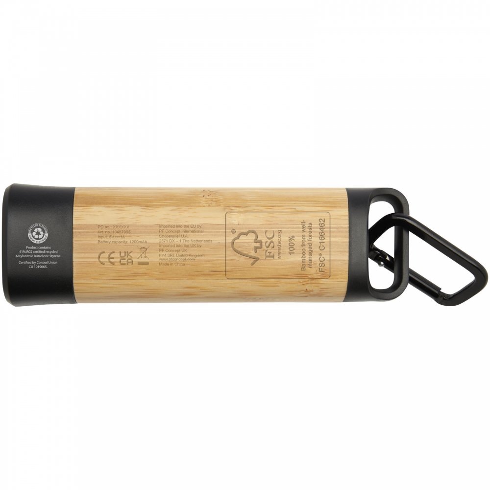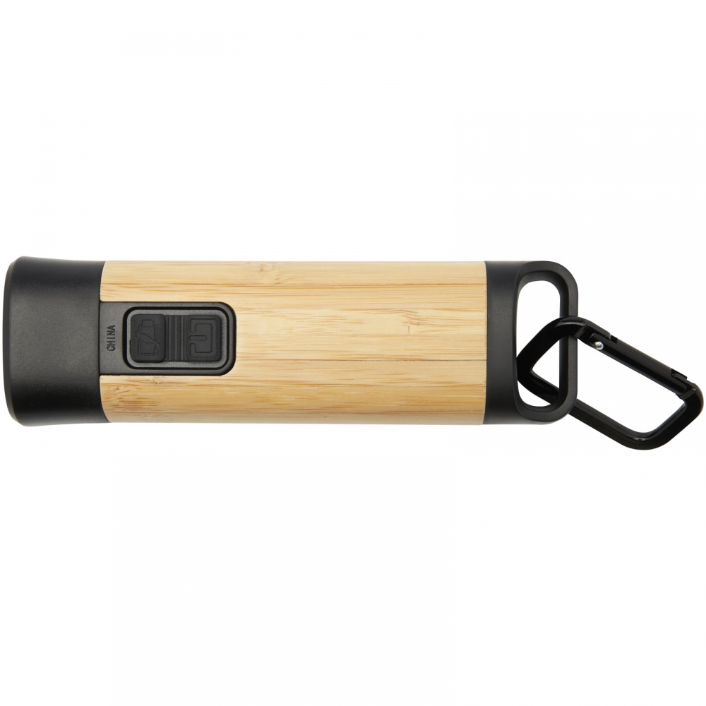 Kuma Taschenlampe aus Bambus und recyceltem RCS Kunststoff mit Karabinerhaken