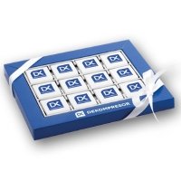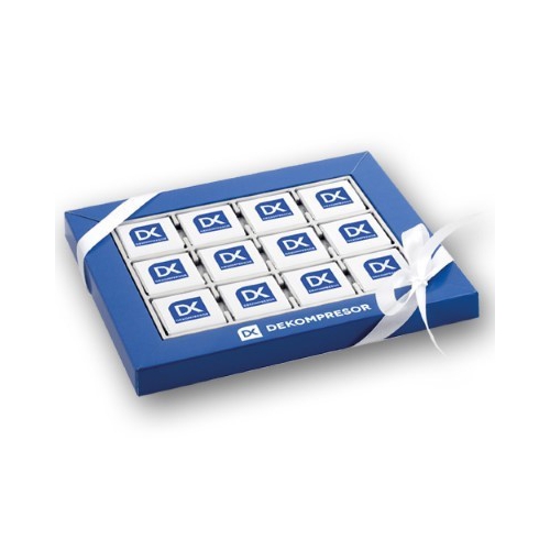 Artikel-Nr: W965S0295Leckere zartschmelzende Schokoladenquadrate , ansprechend verpackt in einer dezenten Rahmenverpackung. Ein Werbegeschenk für jeden Anlass.