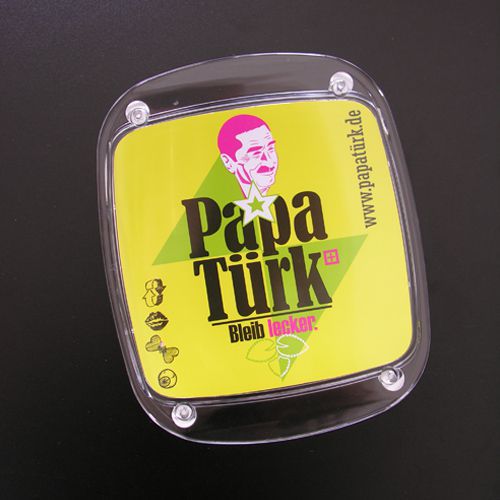 Artikel-Nr: W579008-gpEin besonderer Blickfang an jeder Kasse. Der Kunststoff-Glas-Zahlteller mit großer Werbefläche. Maße des Zahltellers: ca. 198 x 198 x 15 mm, Maße des Labels: ca. 112 x 210 mm. Gewicht des Werbeartikels: ca. 360 g.