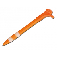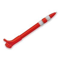 Kunststoffkugelschreiber mit Gummigrip und blauschreibender Mine.