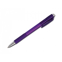 Kunststoffkugelschreiber mit Gummigrip und blauschreibender Mine.
