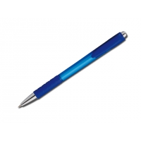 Kunststoffkugelschreiber mit Gummigrip und blauschreibender Mine.