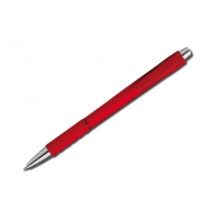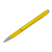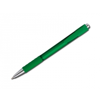 Kunststoffkugelschreiber mit Gummigrip und blauschreibender Mine.