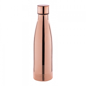 Artikel-Nr: AND800159-97Doppelwandige, kupferisolierte Vakuumflasche aus recyceltem Edelstahl mit hochglänzendem Metallic-Finish. Füllmenge: 500 ml. Die Kupferisolierung hält Getränke 12 Stunden lang heiß und 24 Stunden lang kalt.