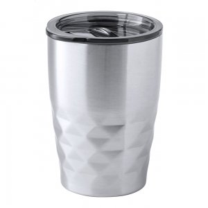 Artikel-Nr: AND721953-21Doppelwandiger, vakuumisolierter Thermobecher aus Edelstahl und Kupfer mit Trinkdeckel aus Kunststoff. Füllmenge: 350 ml. Die Kupferisolierung hält Getränke ca. 12 Stunden lang heiß und ca. 24 Stunden lang kühl.