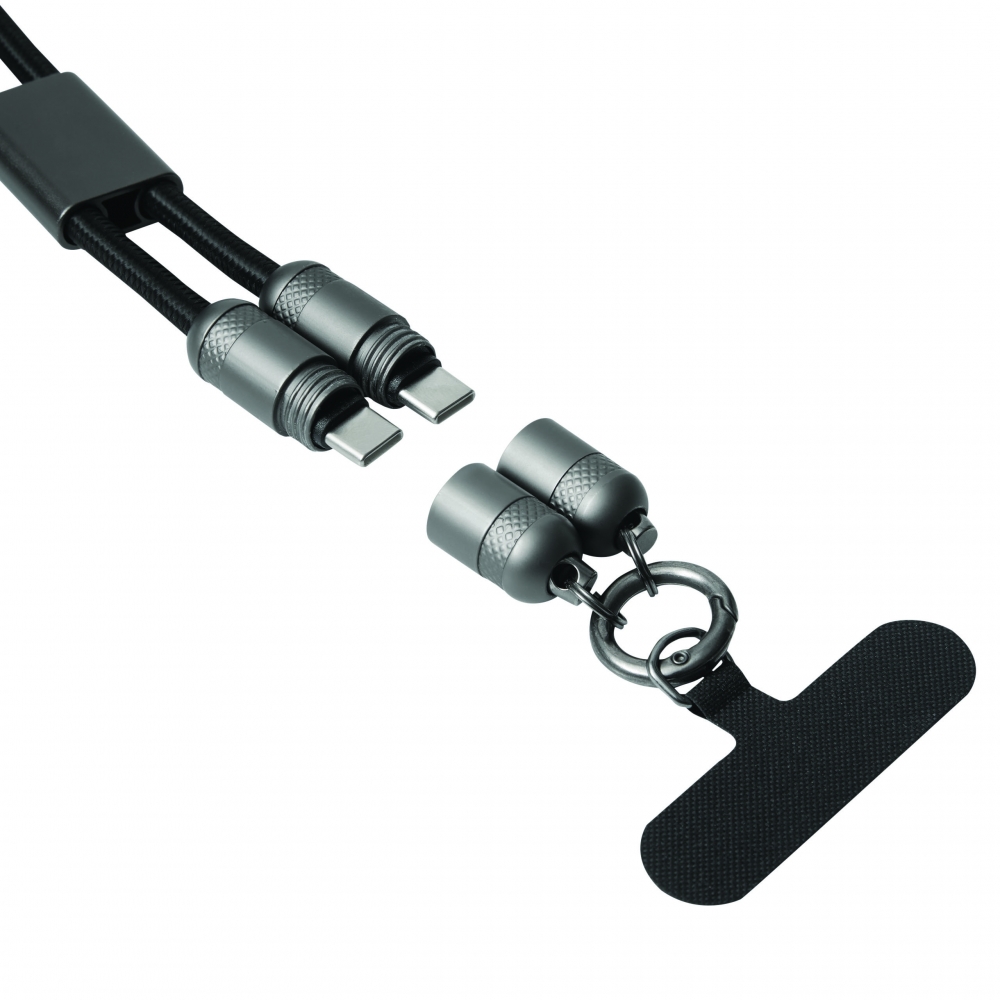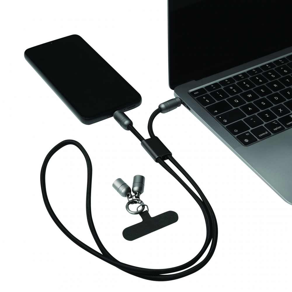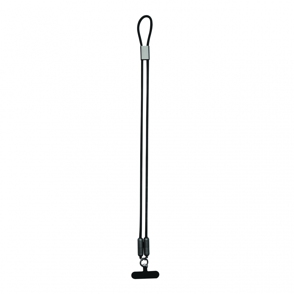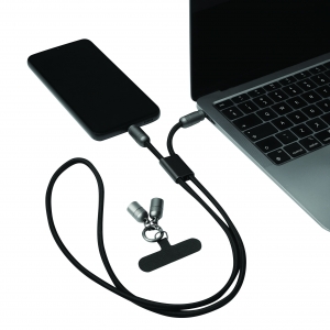 Artikel-Nr: INP56-1107409Lade- und Datenkabel LONGCARRY: zum Aufladen von Smartphones und USB-betriebenen Geräten, inkl. Laptops (65 W Leistungsübertragung), sowie zum Übertragen von Daten, inkl. 2 Ladesteckern (USB Typ C), Kabellänge ca. 108 cm, Lade- und Datenkabel ist gleichzeitig Handykette, mit Halteplättchen zum Platzieren zwischen Smartphone und Handyhülle (nur geeignet für Hüllen, die einen umlaufenden Schutz bieten), inkl. Karabinerhaken (der Karabiner ist NICHT als Sicherung beim Klettern geeignet)