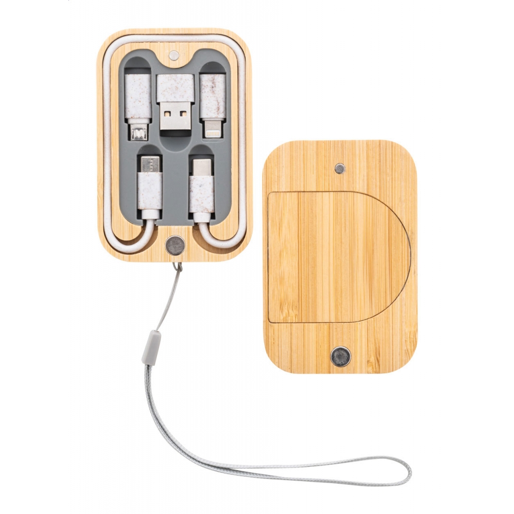Artikel-Nr: AND864062USB-Ladekabelset und Wireless-Fast-Charger (15W) aus ökologischem Weizenstroh-Kunststoff in magnetischem Bambusetui mit Trageschlaufe. Inkl. USB-C-Kabel mit USB-, Micro-USB- und Lightning-Adapter.