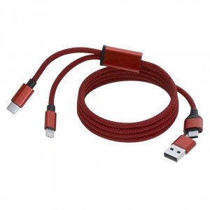 Artikel-Nr: KTO22017003000Ladekabel mit Magnet-Design zur Vermeidung von Verwicklungen, aus robustem Aluminium. Mit Dual-Eingangsanschluss (Typ-C / USB) und Ausgängen Typ-C und 2-in-1 (Lightning & Micro USB).