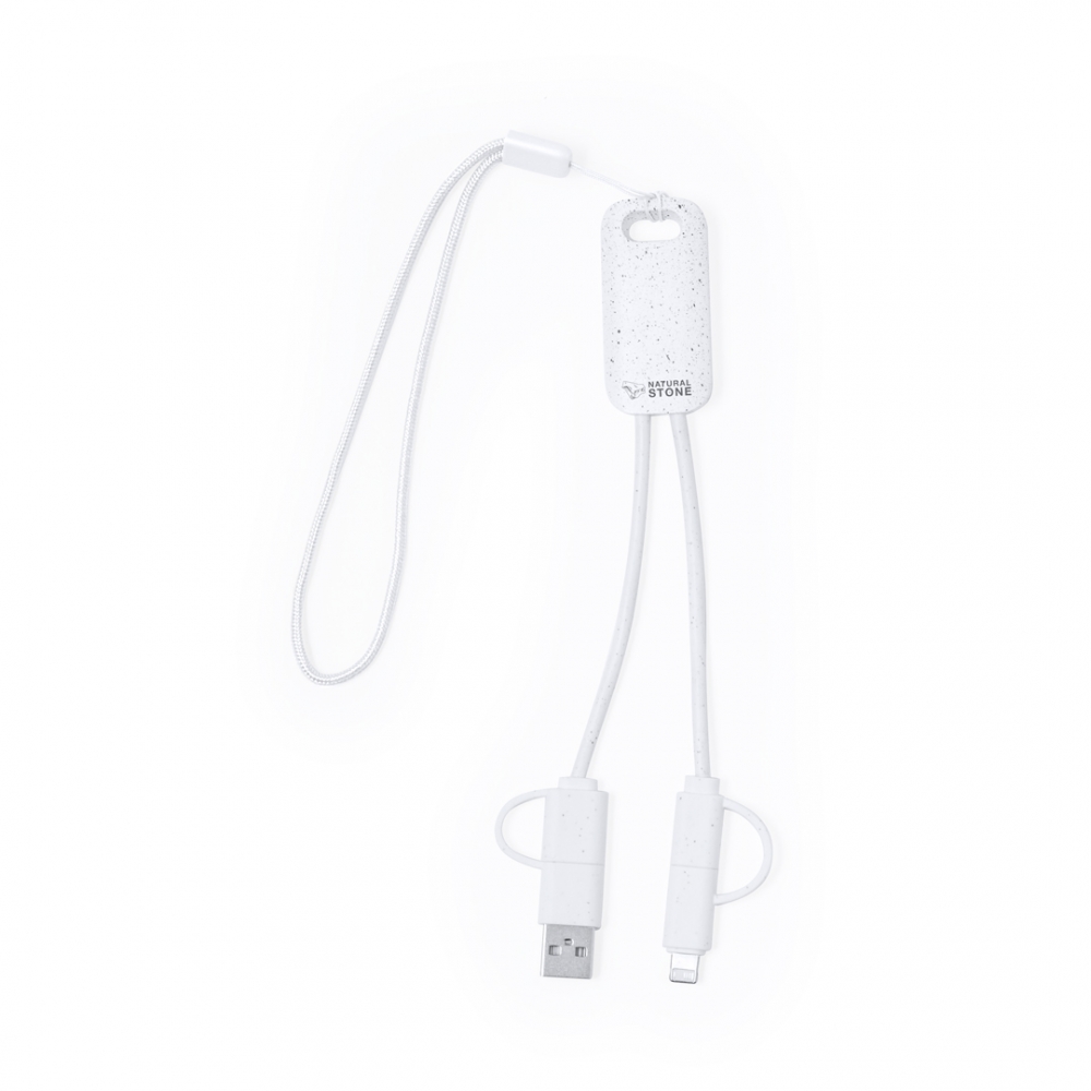 Artikel-Nr: KTO21042001000Ladekabel aus Naturstein-Extrakten in Kombination mit widerstandsfähigem ABS. Mit Typ C / USB-Eingangsanschlüssen und Typ C-, Lightning- und Micro USB-Ausgängen. 5V DC 2.4A. Präsentiert in einer individuellen Kraft-Design-Box. Hergestellt aus Natursteinextrakten, die dazu beitragen, die Verwendung von Kunststoffen zu reduzieren, und eine glatte und widerstandsfähige Oberfläche bieten.
