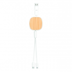 Artikel-Nr: INP56-1107380Ladekabel ROLL ON, aufrollbar (Länge: ca. 92 cm): zum Aufladen von Smartphones und USB-betriebenen Geräten, inkl. 2 Ladesteckern (USB Typ C, Kombistecker Micro-USB / Lightning), kombinierter USB Typ A / Typ C Eingangsstecker, Bambus-Platte für die Veredelung