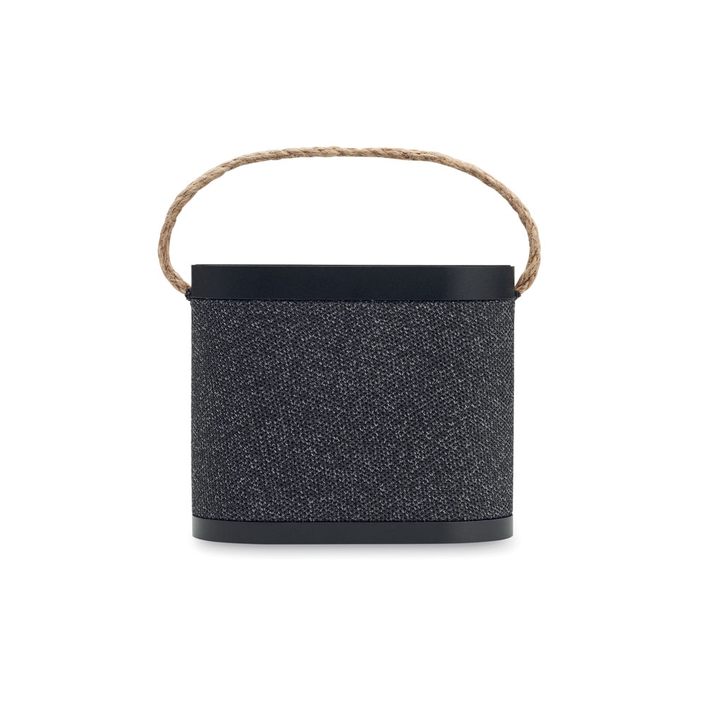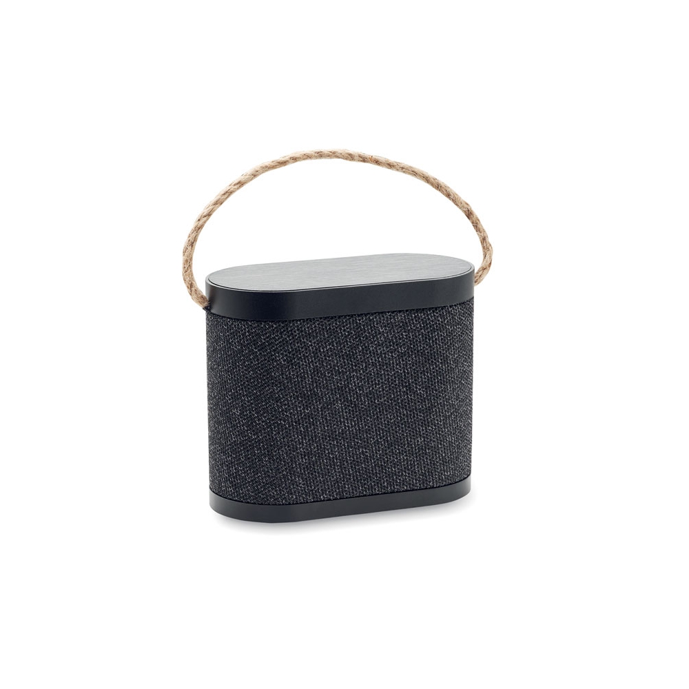 Artikel-Nr: OCBMO2513-035.3 wireless Lautsprecher mit 15W kabelloser Ladestation. ABS mit RPET-Polyester-Gewebe und schwarz beschichtetem Bambus. Jutegriff. Eingebauter Li-Ion-Akku: 1200 mAh. Ausgangsdaten: 5W, 4 Ohm und 5V. Spielzeit ca. 4 Stunden.