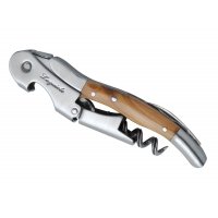 Artikel-Nr: 688DUB506Professionelles Laguiole-Kellnermesser mit Doppelhebel. Griff aus Wacholderholz (aromatisches Holz, riecht wie Pfeffer) mit zwei Vollmetallkronen aus Edelstahl., Korkenzieher aus Stahl mit 5 Spiralen. Fein gezahnte Klinge zur Entfernung der Weinmanschette. Flaschenöffner. Lieferung in Geschenkkästchen aus schwarzem Karton.