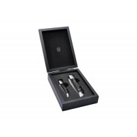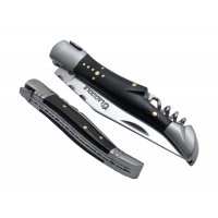 Artikel-Nr: 688DUB609Set bestehend aus zwei Laguiole Messern in einem hölzernen schwarzen Geschenkkästchen mit einem 12 cm Laguiole Messer mit Korkenzieher und einem 9 cm Laguiole Messer. Klingen und zwei Vollmetallkronen aus 420er Edelstahl, Griff aus schwarzem Staminaholz.