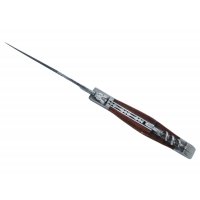 Artikel-Nr: 688DUB039Unsere 'Laguiole' Taschenmesser erfüllen hohe Qualitätsstandards in allen Bereichen: Die Edelstahlklinge: Der 420 er Edelstahl, der für Taschenmesser besonders gut geeignet ist, verbindet die Vorteile von Chrom (Schutz vor Rost) und Kohlenstoff (für eine scharfe Klinge). Die 'Laguiole' Taschenmesser sind rasiermesserscharf geschliffen. Bei normalem Gebrauch bleibt die perfekte Schneidekraft monatelang erhalten. Der Korkenzieher (3 Spiralen) ist aus Edelstahl gefertigt. Zwei Stahlkronen (matt): Diese Metallfassungen verstärken die Stabilität des Messers und runden sein Erscheinungsbild ab. Die Kronen unserer Messer sind grundsätzlich aus Vollmetall. Der Griff: Das gut einfärbbare Staminaholz mit seiner regelmäßigen Maserung ist ein typisches Material für Taschenmesser. Als Ornamente trägt dieses braun gefärbte Modell ein Hirtenkreuz in Einlegearbeit, sowie die typische 'Laguiole-Fliege' sowie ins Metall gravierte Muster auf dem Rücken des Griffs.