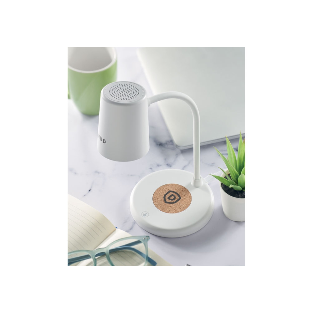Artikel-Nr: OCBMO2124-06Tischleuchte mit kabelloser Ladestation 15W und 5.1 Wireless Lautsprecher. 3 Helligkeitsstufen: Tageslicht, Kaltlicht und natürliches Licht. Touch-Bedienung. Ausgang: DC5V/1A (5W).