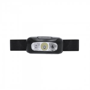 Artikel-Nr: KTO22069002000Stirnlampe mit verstellbarem elastischen Riemen für Kopf, Arm... Mit LED-Licht und 3 Beleuchtungspositionen (2 feste und 1 blinkende Position). Mit eingebautem 400-mAh wiederaufladbarem Akku und einem mitgelieferten USB-A-zu-USB-C-Ladekabel in Schwarz.
