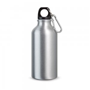 Artikel-Nr: PST94601-127Trinkflasche aus Aluminium (400 mL) mit Karabiner. Erhältlich in unterschiedlichen Farben. ø66 x 176 mm