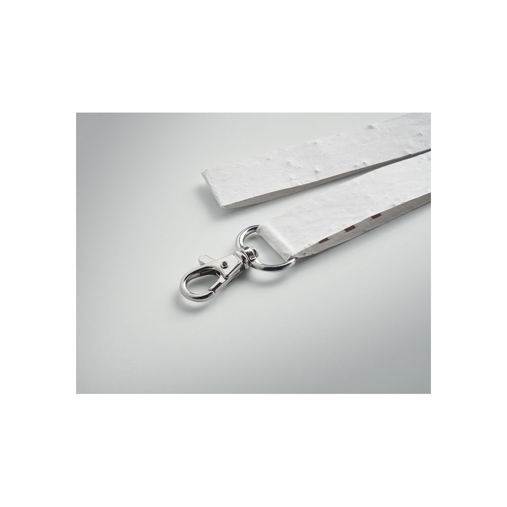 Artikel-Nr: OCBMO6906-06Lanyard aus Samenpapier mit Metallkarabiner. Recyceltes Papier mit Wildblumensamen. 20 mm breit. Hergestellt in der EU.