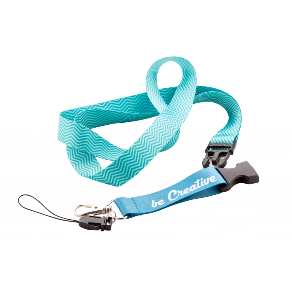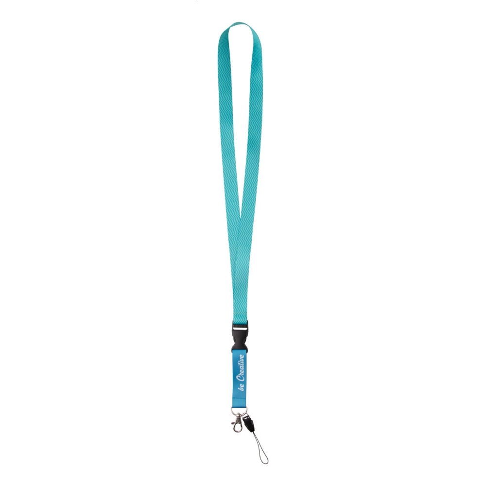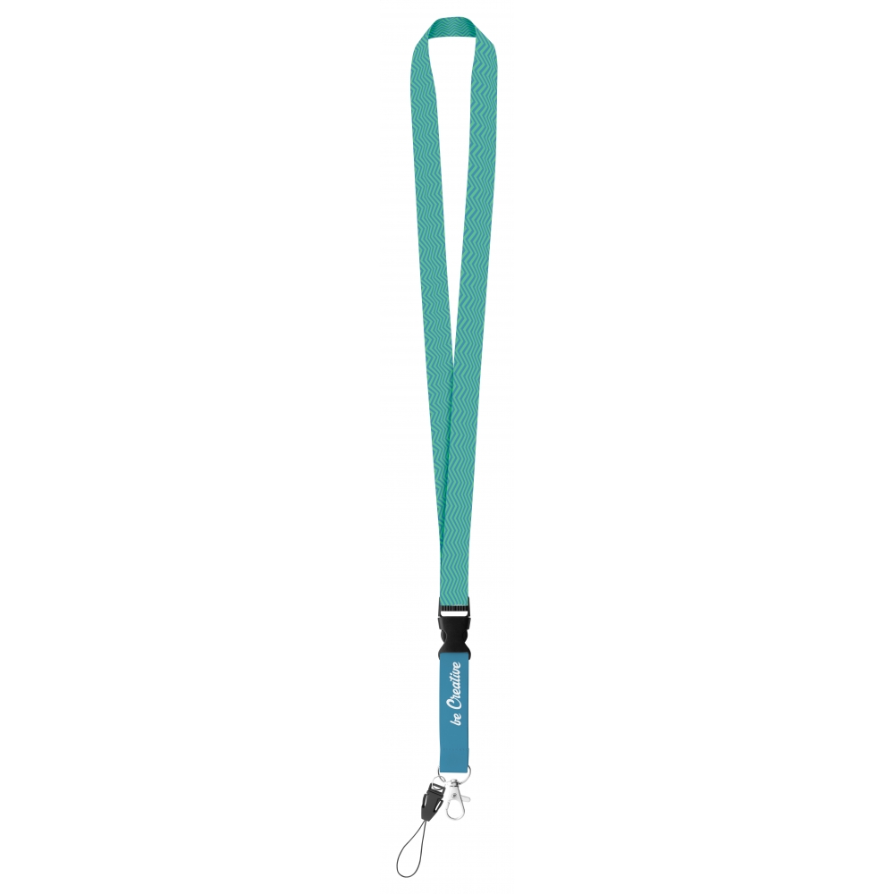 Artikel-Nr: AND718037Polyester Lanyard mit abtrennbaren Metall-Karabiner, Handyfaden und beidseitigem Sublimationsdruck. Mindestmenge: 100 Stk.